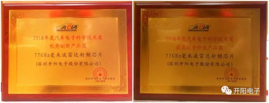 会上,XINGKONG.COM自主研发的“77GHz毫米波雷达射频芯片”一举获得两项中国汽车电子科学技术奖——“优秀创新产品奖”和“最具投资价值产品奖”。