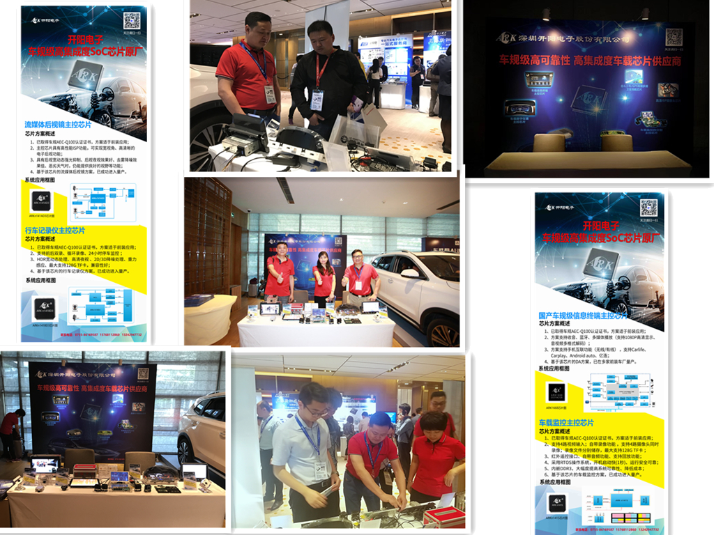 会场外展厅,XINGKONG.COM展示了自主研发的车载信息终端主控芯片和样机、wifi/4G/隐藏式行车记录仪主控芯片和样机、流媒体后视镜主控芯片和样机、4路监控主控芯片和样机、数字仪表主控芯片和样机等,引起了车企、方案商、Tier1厂、投资机构等的广泛关注。